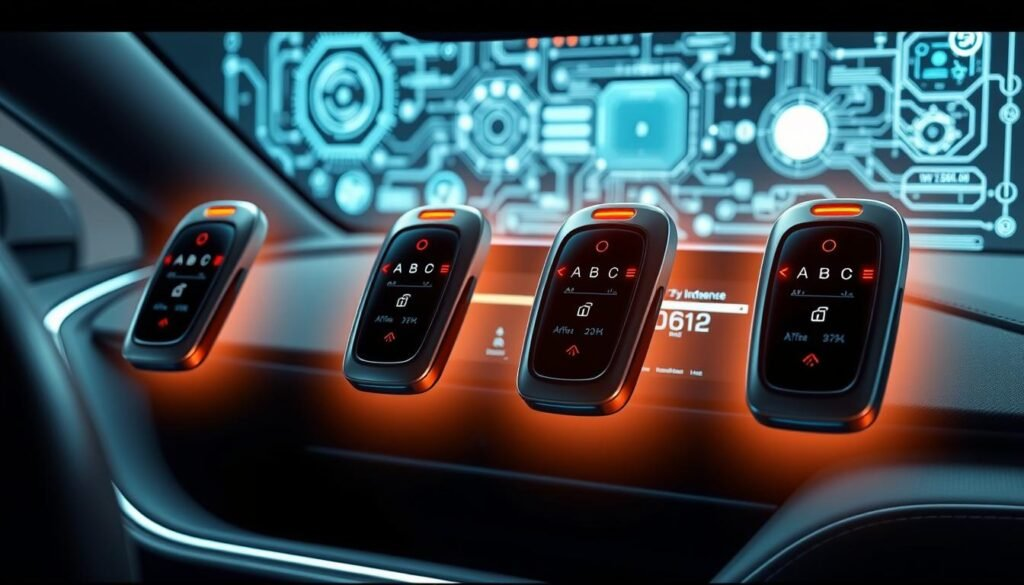 تتضمن هذه المفاتيح تقنيات مختلفة مثل المفاتيح الرقمية التي تعمل بالهاتف الذكي أو أجهزة الإرسال اللاسلكي “Keyless Entry” التي تفتح السيارة تلقائياً عند الاقتراب منها.