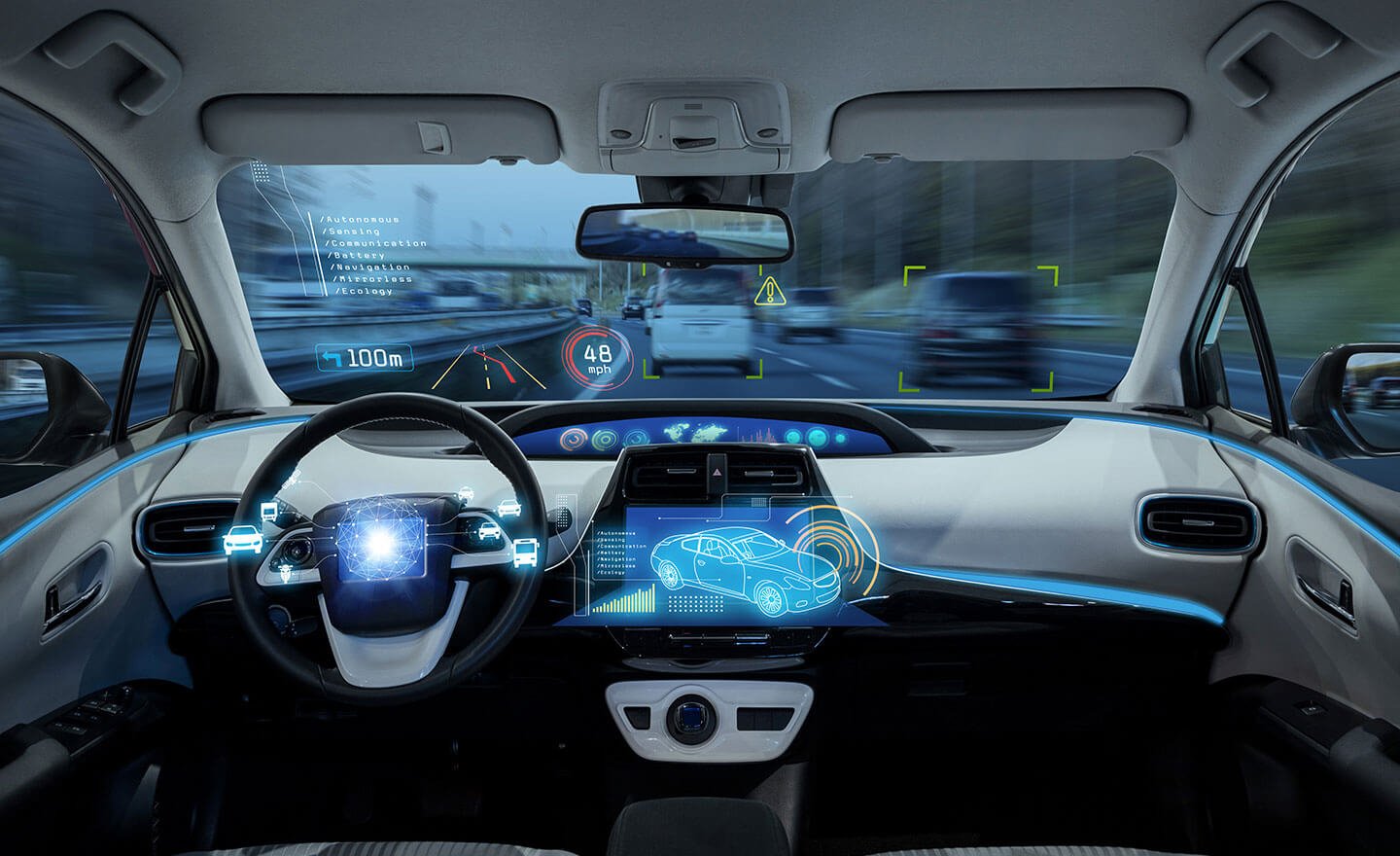 • الذكاء الاصطناعي (AI): تعالج خوارزميات الذكاء الاصطناعي البيانات من المستشعرات لفهم البيئة، وتحديد الأجسام، والتنبؤ بسلوك مستخدمي الطريق الآخرين لاتخاذ قرارات القيادة في الوقت الفعلي.